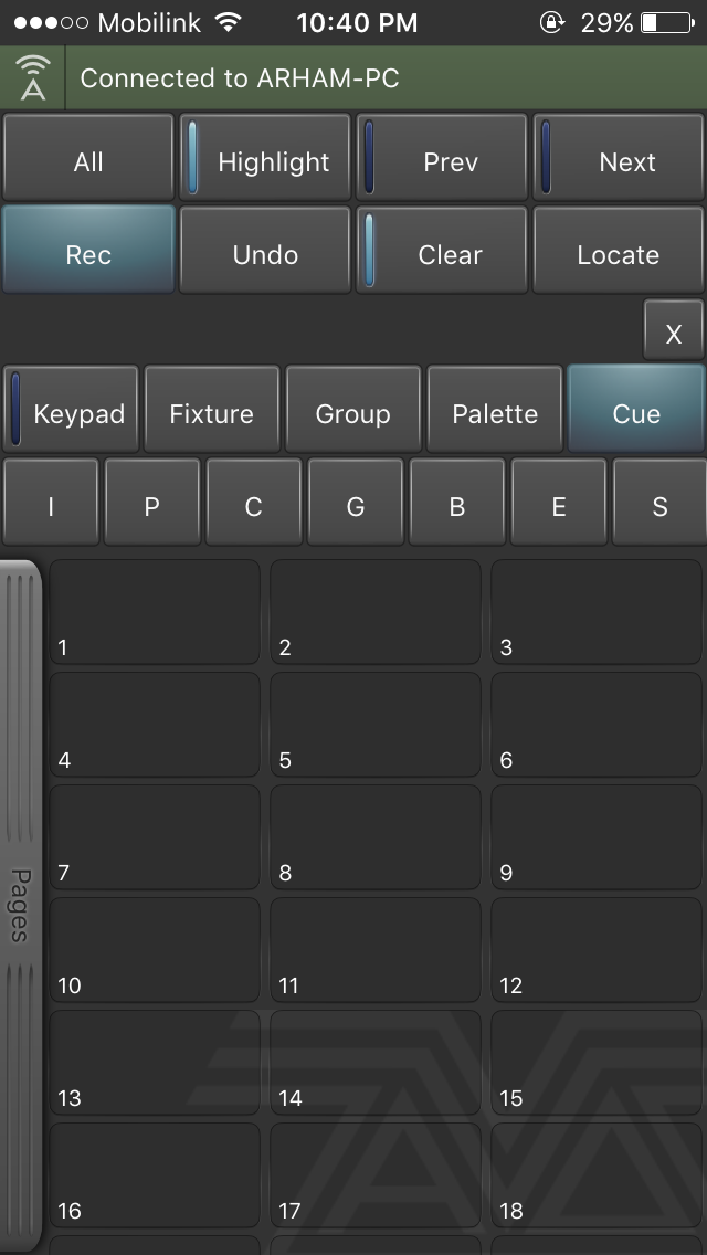 Ok but , I have already some cues on my page 1 in my PC, but the app is not showing those on my remote screen , why ? . Although it shows correct fixtures patched and can change the attributes values as well .